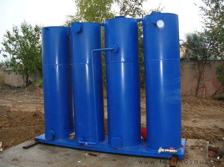 Выделившийся при флотации нефтешлам накапливается в шламосборном кармане. При наполнении кармана нефтешламом, последний сливается в герметичную емкость и перевозится на утилизацию. Каждый аппарат установки смонтирован на отдельных рамах из швеллеров. Аппараты изготовлены из листовой стали. Флотационная емкость 1 представляет собой цилиндрический резервуар сваренный из листовой стали, разделенный на два объема перегородкой. В первом - размещается камера смешения сточных вод с водо-воздушной эмульсией, а во второй- камера отстаивания воды. Емкость имеет штуцера для подвода загрязненных вод и лоток для вывода осветленной воды. Для удаления выделенного из воды нефтешлама в верхней части емкости установлен трубопровод, который собирает с «зеркала» воды пленку нефтепродуктов.