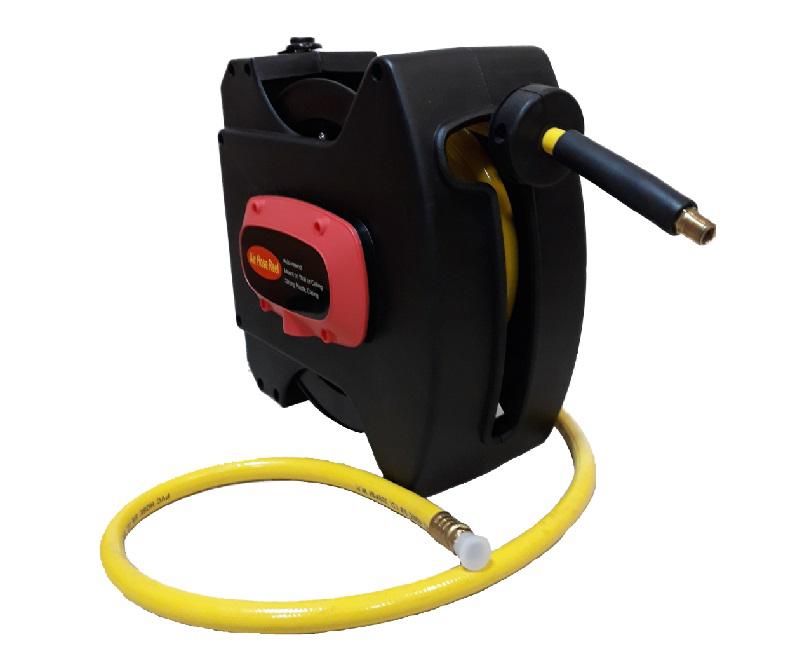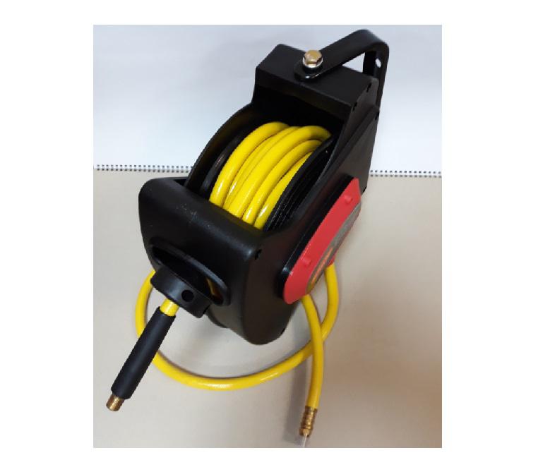 Самосматывающаяся – экономит место. Возвратная пружина с ограничителем сматывания. Бережет шланги от перегиба и наезда колесами автомобиля. Быстросъемное соединение позволяет быстро сменить гайковерт на продувочный пистолет, на зачистную машинку и т.п.