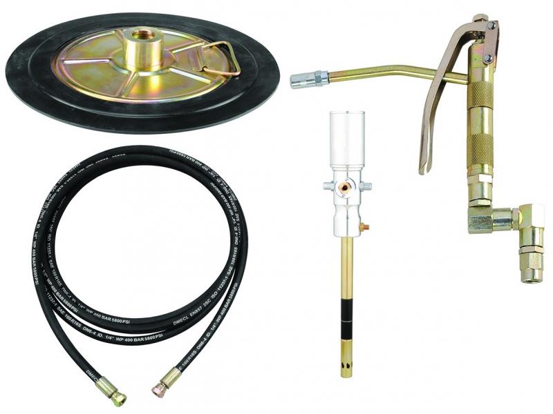 Жесткий алюминиевый наконечник позволяет производить смазку в труднодоступных местах автомобилей и оборудования.Фиксация насоса с крышкой к смазочному баку производится с помощью металлических защелок с резьбой.
