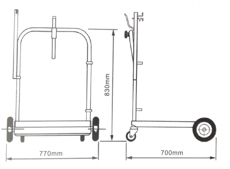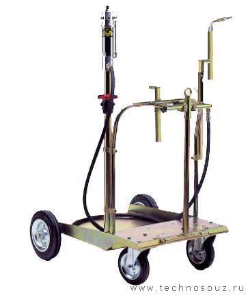 Установка для раздачи пластичной смазки. Комплектация: тележка, насос пневматический, шланг 1,5м, Раздаточный пистолет ручной.