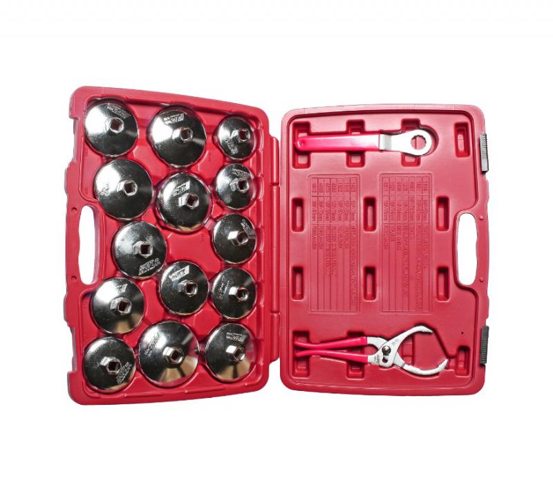 Съемник масляного фильтра "чашка" набор 16 шт. Применяется с инструментом под квадрат 1/2" или ключом 21 мм. Головки изготовлены из стали.