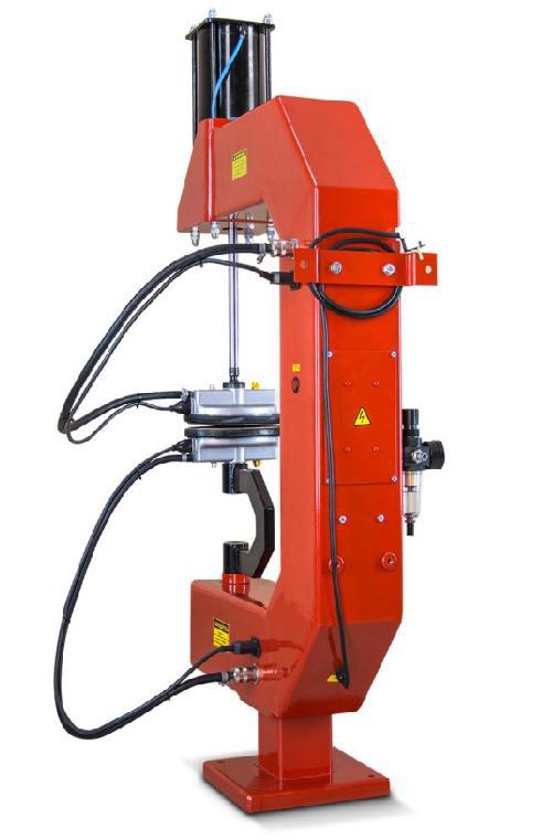 Перемещение нагревательных элементов осуществляется при помощи пневмоцилиндра, создающего максимальное давление на ремонтируемую зону более чем 900 кг. Оба элемента снабжены электрическими и пневматическим разъемами, что облегчает техническое обслуживание вулканизатора и быстрый монтаж нагревательных элементов при установке на вулканизатор покрышек большого диаметра.