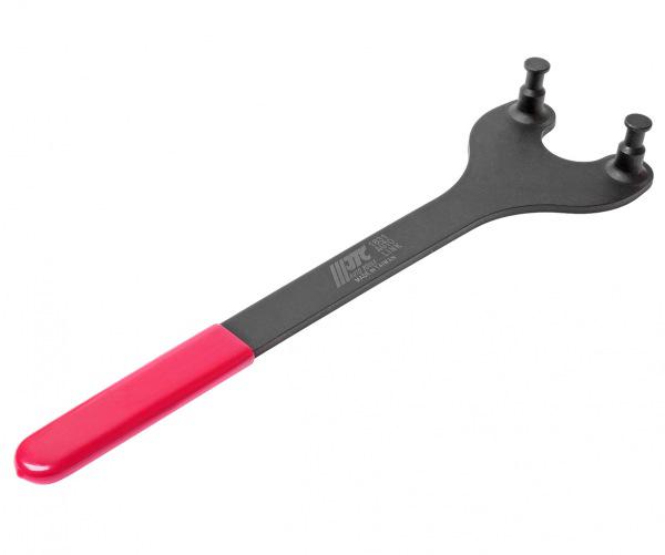 Описание Предназначен для автомобилей Тойота (Toyota), Ниссан (Nissan), а также других марок автомобилей с двигателями типа OHC. Фиксатор имеет упорные штифты с канавками (бороздками), которые предназначены для фиксации шкива распределительного вала в неподвижном положении при откручивании центрального болта вала. Применяется для большинства OHC двигателей азиатского производства. Подходит для вертикальных V6 двигателей установленных на Ниссан (Nissan) Maxima, а также для двигателей типа 3VZFE и 1MZFE, используемых в автомобилях Тойота (Toyota). Габаритные размеры: 500/190/40 мм. (Д/Ш/В) Вес: 920 гр.