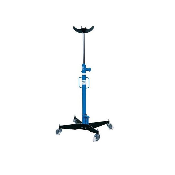 Стойка трансмиссионная гидравлическая г/п 1000 кг, одноступенчатая. Применяется для монтажа и демонтажа узлов трансмиссий и других агрегатов автомобиля, установленного на подъемнике для ремонта или технического обслуживания. Одноконтурный плунжерный насос. Металлические колёса. Используемая жидкость – масло веретённое И20А или аналог.