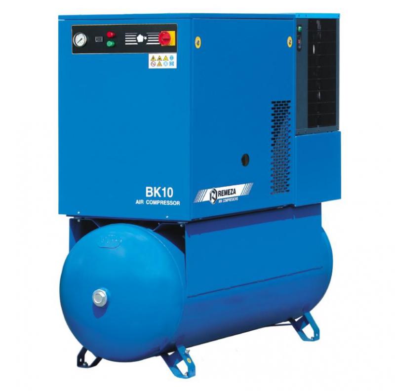 Основу оборудования составляют маслозаполненный винтовой блок и электродвигатель немецкого производства. Подача крутящего момента с понижением скорости вращения выполняется ременной передачей. Благодаря автоматической работе отпадает необходимость в постоянном нахождении оператора в зоне функционирования компрессора. При этом оборудование отличается низким уровнем шума, что позволяет размещать его вблизи рабочих мест.