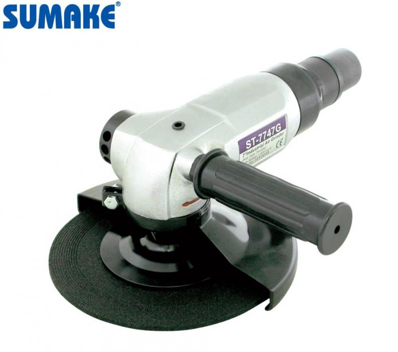 Для удобства резки и зачистки краёв металлического изделия пневмоболгарка снабжена дополнительной обрезиненной ручкой. Работать только в защитных очках!!!