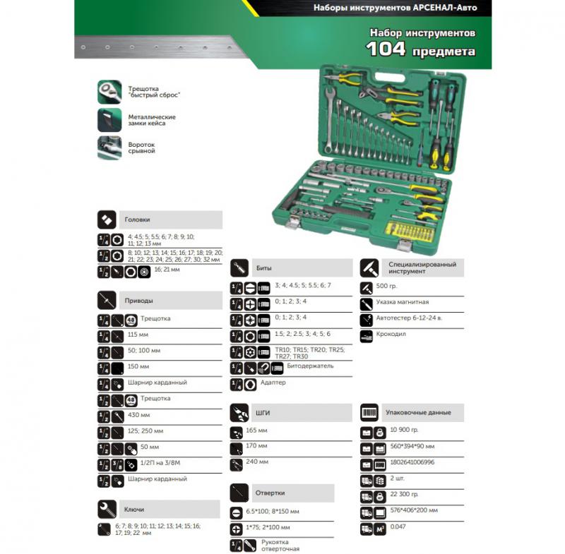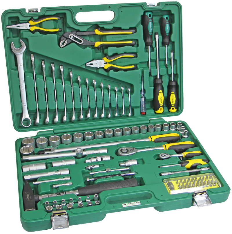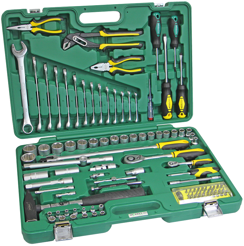 | ТХ (таблица) (Описание) : | Серия Авто Заводской артикул AA-C1412P104 Количество предметов 104 шт Габариты 560*394*90 мм Вес 10.9 кг Производство Тайвань Кейс Пластик |