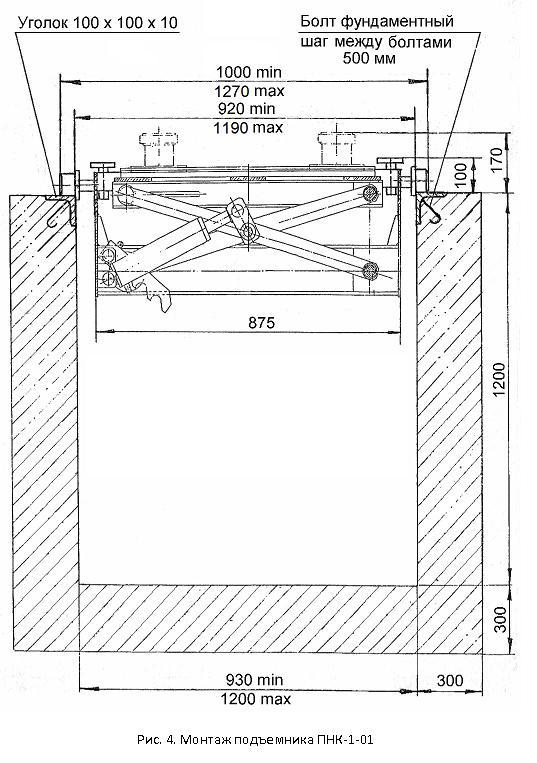 По отдельному заказу подъемник ПНК-1 может быть изготовлен для установки на канаву шириной от 930 до 1100 мм (с обязательным приложением к заказу поперечного разреза канавы). Конструкция основания подъемника ПНК-1-01 предусматривает возможность регулировки в целях установки на канаве шириной от 930 до 1200 мм.