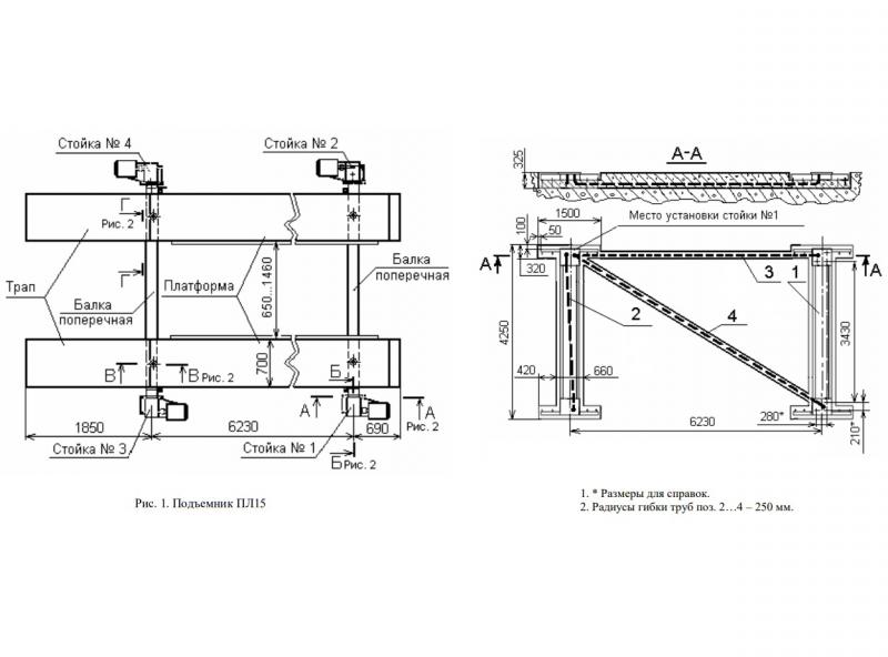 Описание конструкции подъемника платформенного четырехстоечного ПЛ-15: