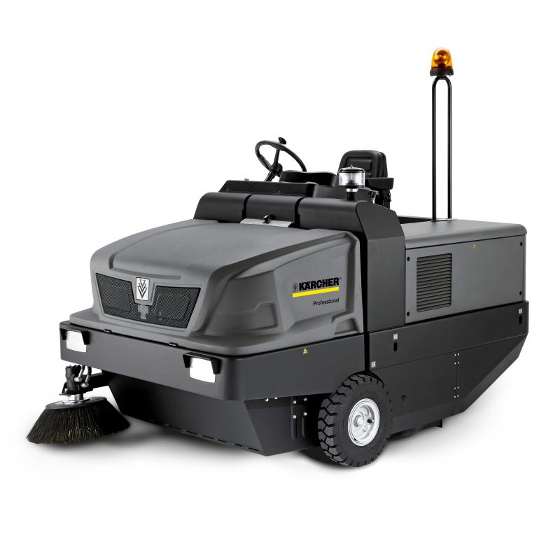 Подметально-всасывающая машина Karcher KM 150/500 R Lpg с сиденьем водителя, с мощным 4-тактным газовым двигателем. Отличается высочайшей производительностью уборки - предназначена для эксплуатации в сложнейших условиях.