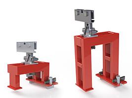 Для правки кузовов используются передвижные силовые устройства с усилием вытяжки 5 или 10 тон. Фиксация силового устройства производится в любом необходимом месте на раме с помощью кронштейнов и клиньев, после чего можно сразу приступать к вытяжке.