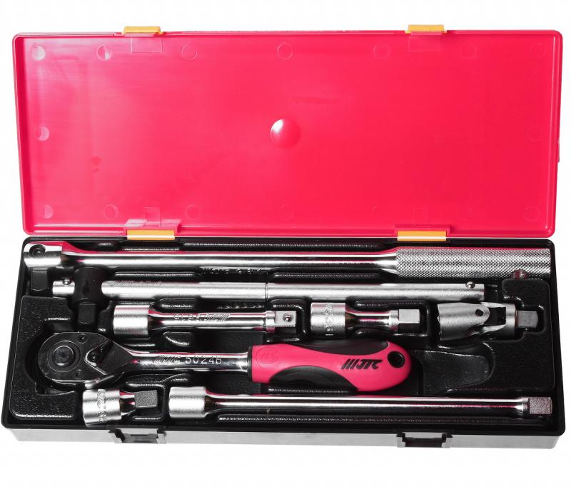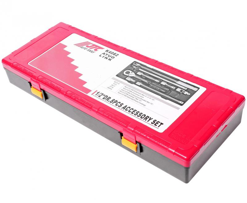 В комплекте: Артикулы JTC-3613-6: удлинитель под ключ 1/2: 2, 3, 5, 10 - 4 шт. JTC-3721: переходник карданный 1/2 - 1 шт. JTC-3617: 1/2 вороток с шарниром 15 - 1 шт. JTC-3718: 1/2 вороток с плавающей головкой 12 - 1 шт. JTC-3604 В: трещотка 1/2 (резиновая рукоятка) - 1 шт. Общее количество предметов: 8 шт. Комплект упакован в прочный презентабельный бокс. Габаритные размеры: 370/145/55 мм. (Д/Ш/В) Вес: 3150 гр.