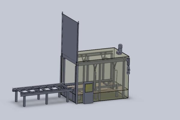 Принцип работы: деталь с помощью погрузочного механизма помещается в корзину на подкатной телеге. С помощью механизма загрузки-выгрузки телеги (лебёдки) корзина загружается в моечную камеру. Очистка детали производится щелочным раствором, который подаётся через сопла, расположенные на квадратных рампах, которые движутся вдоль омываемой детали. За счёт сопел, установленных под углом, производится очистка торцовых поверхностей детали. Т.е., очистка детали производится со всех сторон.