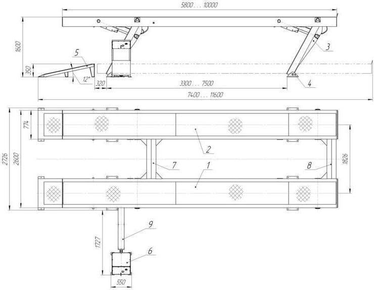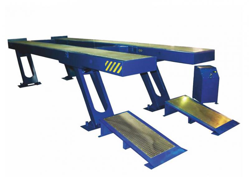 Универсальная платформа в форме параллелограмма предназначена для ремонта автомобилей с различной колесной базой и шириной колеи;