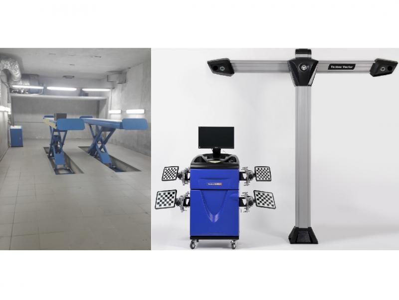 Комплект TS-1107 Гидравлический ножничный подъемник для всех типов стендов сход-развал, в т.ч. 3D. Ровный пол (заглубляемый). Длина трапов 4500 мм. Высота подъема 1800 + 420 мм. г/п 3,5т. В комплекте: подъемник второго уровня + задние платформы + противооткатные ограничители 4шт. + Техно Вектор 7 Aluminum - двухкамерный стенд сход развал 3D. Стенд оснащен 2 видеокамерами по 5 Мп. с компьютерной стойкой V-серии. Расстояние от камер до центра передних поворотных платформ 1400 - 2500 мм. Можно устанавливать на яме и подъемнике. В комплекте: круги поворотные.
