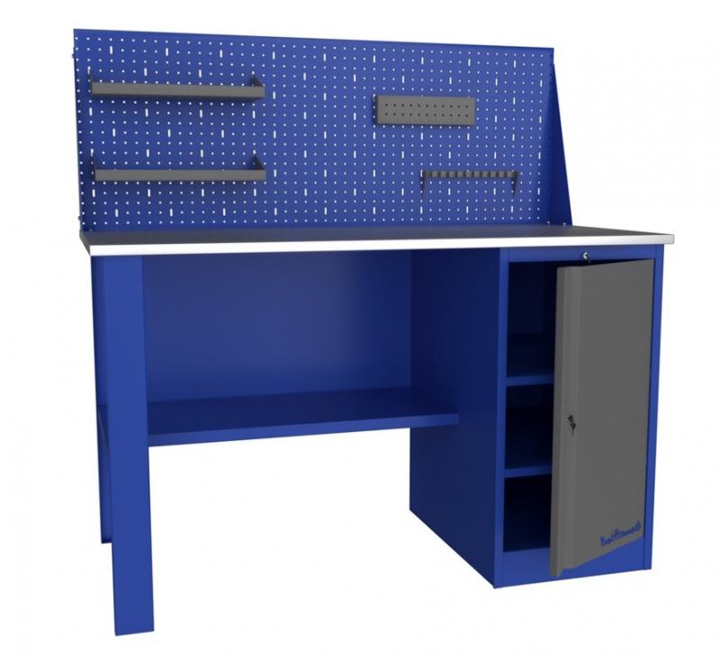 Верстак металлический (однотумбовый), PROFFI-114 T. Размеры: 870х1400х700мм, 1 тумба с дверью (2 полки), замок, полка, оцинк. столешн. h=24 мм (фанера+оцинкованный металл 1мм). Нагрузка на столешницу 300кг.
