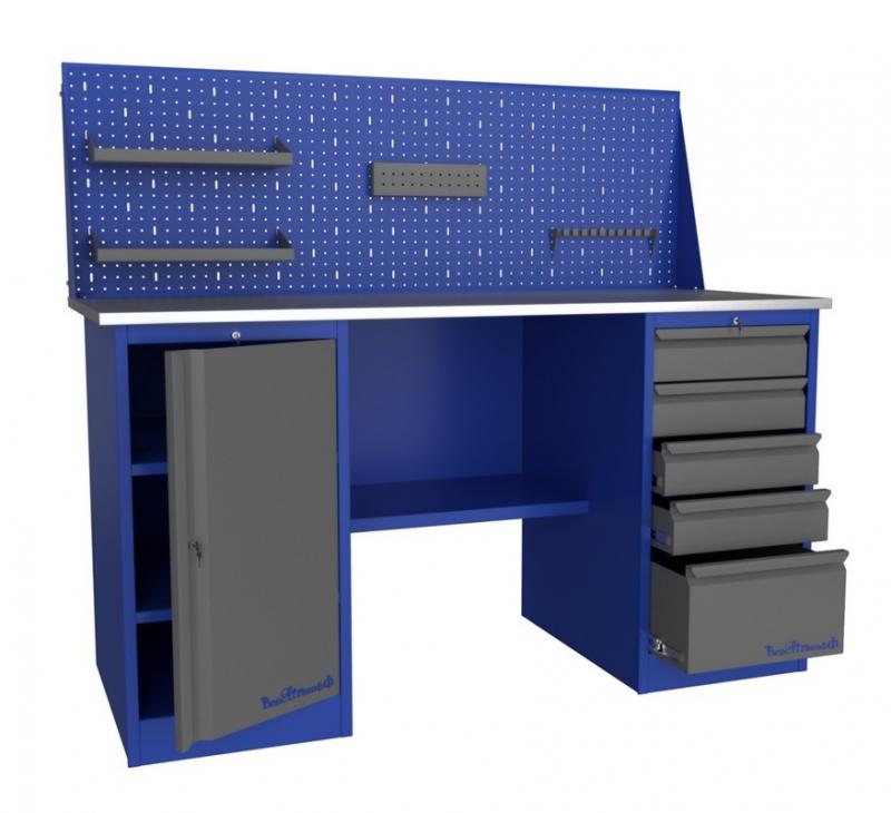 Для организации рабочих мест в автосервисах, мастерских, цехах и т.д., компания разработала линейку верстаков и рабочих столов. Основания этих изделий изготовлены из листового металла и покрыты порошковой краской. Столешницы сделаны из фанеры толщиной 24 мм. и обшиты оцинкованным металлом толщиной 1 мм.