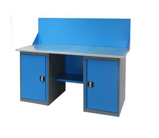 Верстак имеет надежную модульную конструкцию с усиленной столешницей (плита МДФ 25мм, покрытая листом оцинкованного металла). Используется, не только в качестве рабочей поверхности, но и для хранения всевозможных инструментов. Верстак укомплектован двумя тумбами с полками. Тумба оснащена двумя переставными полками (шаг 39мм) и ригельным замком. инструментальная панель в комплект не входит. Поставляется в разобранном виде. Верстаки широко используются в слесарных мастерских, автосервисах, производственных цехах и гаражах. Верстаки могут поставляться как в собранном, так и в разобранном виде.