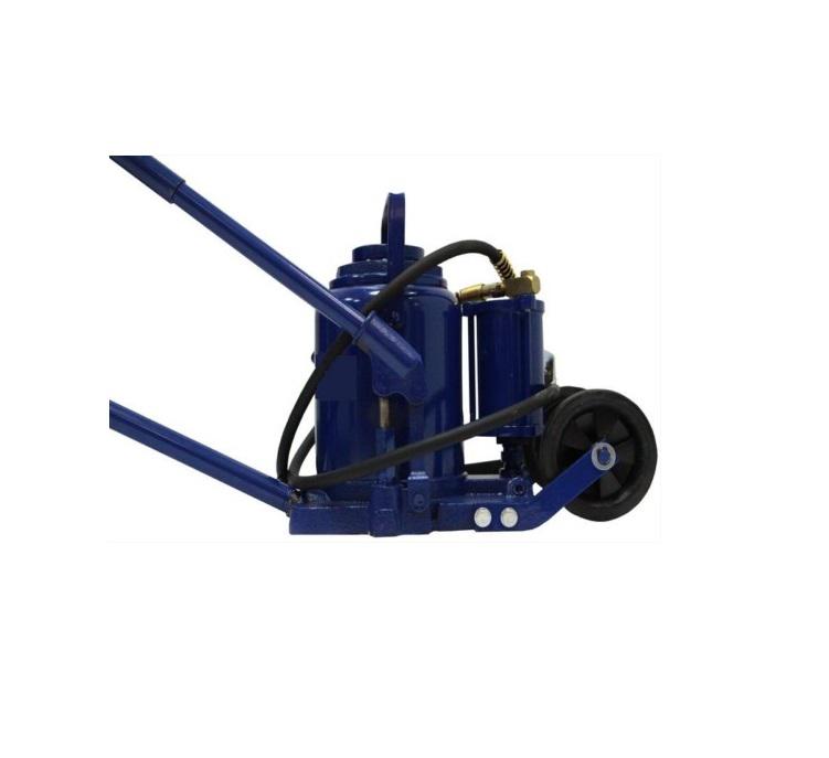 Увеличенный диаметр металлических колес домкрата, позволяет легко транспортировать его по не ровным поверхностям цеха.
