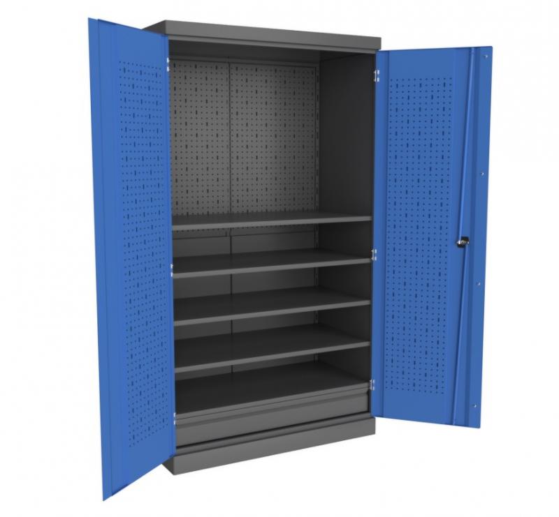 Шкаф инструментальный серии «PROFFI» предназначен для хранения оснастки, приспособлений и инструмента на рабочих местах в мастерских, цехах и других производственных зонах. Шкаф изготовлен из листовой стали и обеспечивает надежное запирание дверей ригельной системой. Шкаф данной модели может комплектоваться либо полками PROFFI(1) и ящиками PROFFI(1) – по всей ширине шкафа, при этом максимальное количество полок и ящиков по высоте - 14 штук.