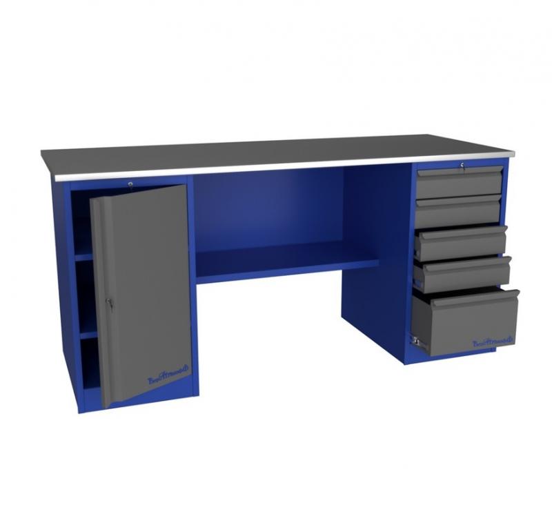 Для организации рабочих мест в автосервисах, мастерских, цехах и т.д., компания разработала линейку верстаков и рабочих столов. Основания этих изделий изготовлены из листового металла и покрыты порошковой краской.