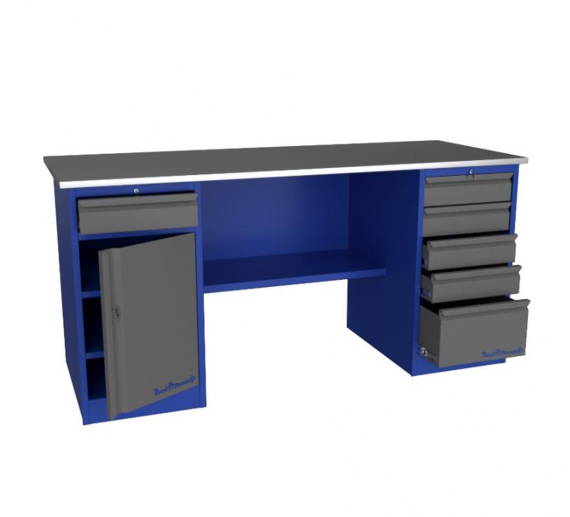 Для организации рабочих мест в автосервисах, мастерских, цехах и т.д., компания разработала линейку верстаков и рабочих столов. Основания этих изделий изготовлены из листового металла и покрыты порошковой краской. Столешницы сделаны из фанеры толщиной 24 мм. и обшиты оцинкованным металлом толщиной 1 мм.