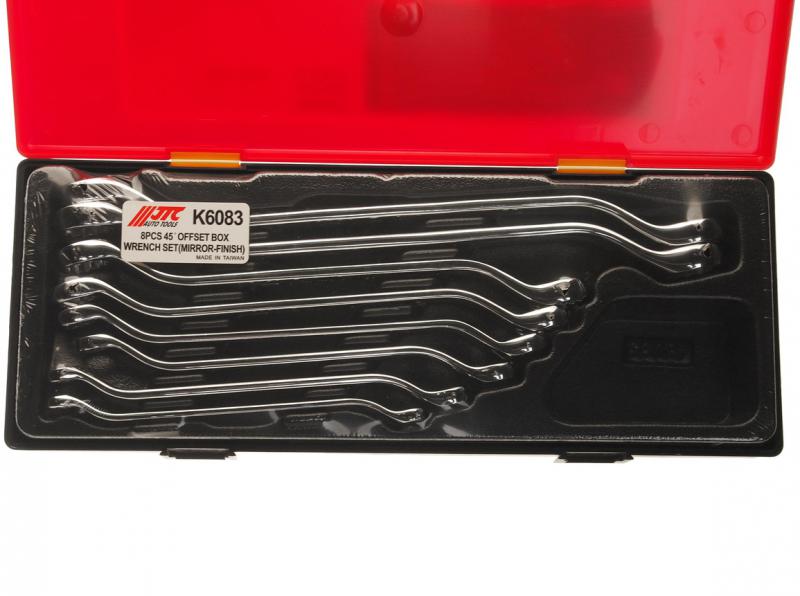 Набор ключей накидных 45° (европейский стандарт) 8-24мм (в кейсе) зерк.полир. 8шт JTC-K6083