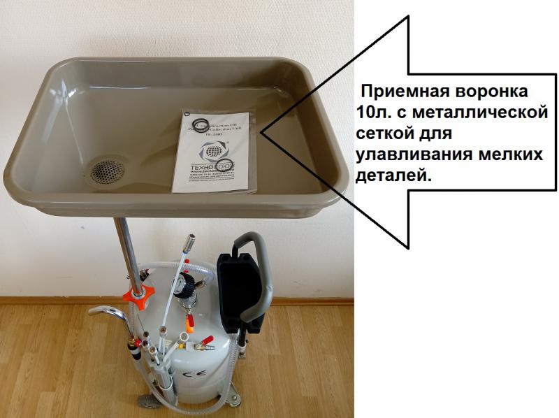 Чаша (воронка) для сбора масла устанавливается на нужной для работы высоте при помощи зажимного приспособления.