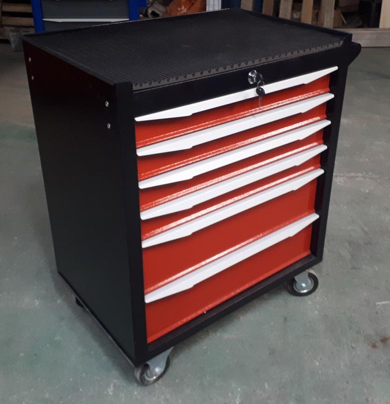 Корпус тележки является несущим и изготовлен из стали 1.0 мм. Ящики тележки имеют размер, совместимый с большинством современных ложементов под инструменты. Нагрузка на каждый ящик до 25 кг. Все тележки окрашиваются промышленной износостойкой порошковой краской.