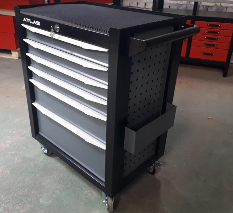 Каркас тележки имеет цельносварную конструкцию из стали 1.5 мм. Ящики тележки имеют размер, совместимый с большинством современных ложементов под инструменты. Нагрузка на каждый ящик до 35 кг. Тележка перемещается на надёжных промышленных колёсах, выдерживающих тяжёлые условия эксплуатации. Все тележки окрашиваются промышленной износостойкой порошковой краской.