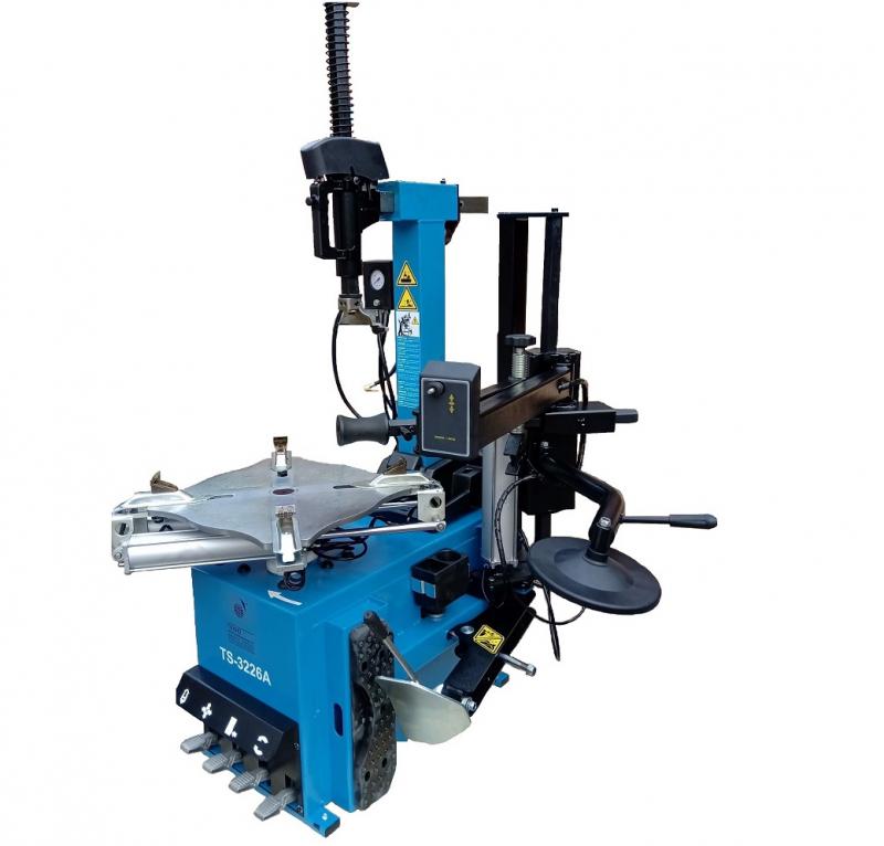 автоматического шиномонтажного стенда TS-3226А предназначен для монтажа и демонтажа шин легковых автомобилей, внедорожников и легких грузовиков с размером колес от 11-24 дюйма. Усилие пневмоцилиндра в 2500 кг. В комплекте: полноценная 3-й рука для работы с жесткой и низкопрофильной резиной RUNFLAT. + встроенный бустер  24 литра (взрывная подкачка) + пистолет для подкачки шин + монтажка + регулятор давления с влагоотделителем и манометром. Напряжение шиномонтажных станков 220В или 380В на выбор.