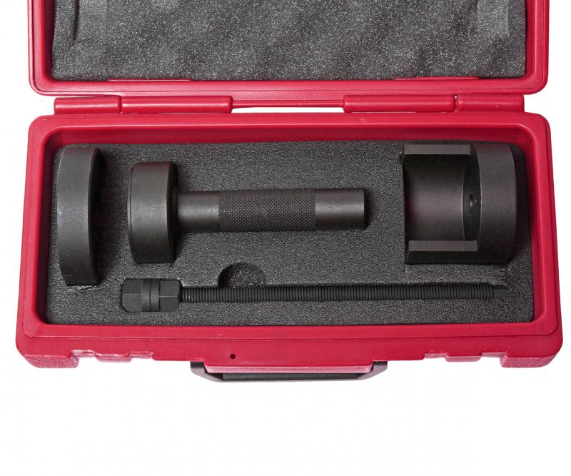 Комплектация Оправка для запрессовки; Оправка для запрессовки; Оправка для выпрессовки; Силовой винт; Гайка – 2 шт. Описание Применяется для замены всех сайлентблоков задней балки автомобиля. Все работы выполняются прямо на автомобиле. Нет необходимости снимать балку. Применение Toyota Corollа (Altis). Важные рекомендации Для поддержания съемника в рабочем состоянии требуется регулярная смазка силового винта. ПОДРОБНАЯ ВИДЕОИНСТРУКЦИЯ