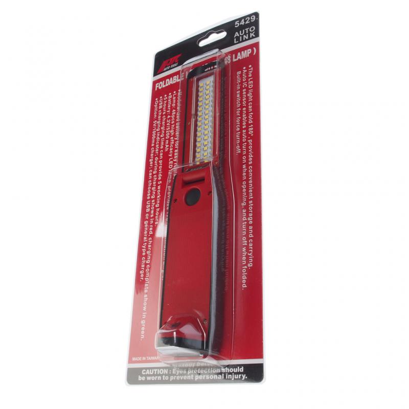 Изменяемый угол наклона 180 градусов обеспечивает комфортную работу в любом положении. Поворот вокруг своей оси на 180 градусов, поворот корпуса на 120 градусов. Автоматическое включение при открытии, и выключение при закрытии корпуса. Оборудована 48 светодиодами и электронным переключателем. При времени зарядки 5 часов, время работы составляет 5 часов. Индикатор зарядки: красный цвет - лампа заряжается, зеленый цвет - лампа полностью заряжена. Конструкция лампы предусматривает возможность легкого отсоединения аккумулятора. Аккумулятор: 4,2 В / 5200 мА·ч.