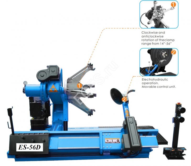 · Реверс рабочей головки грузового шиномонтажного станка позволяет, в случае зажима шины разблокировать монтажную лапку без повреждения покрышки и диска.