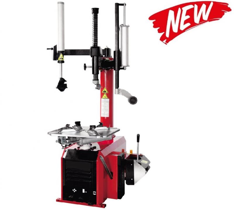 Два устройства типа «третья рука» - пневмоприжимы. Одна «третья рука» для отжима/поднятия резины или центровки, вторая для отжима с роликами. Шиномонтажный станок оснащён реверсом монтажного стола. Редуктор закрытого типа. Не требует смазки и обслуживания. Элементы пневмосистемы изготовлены из металла. Металлические сепараторы педального блока. Встроенный регулятор давления с влагоотделителем с лубрикатором. Пистолет для накачки с манометром в комплекте поставки. Шиномонтажный станок с боковым отводом каретки.