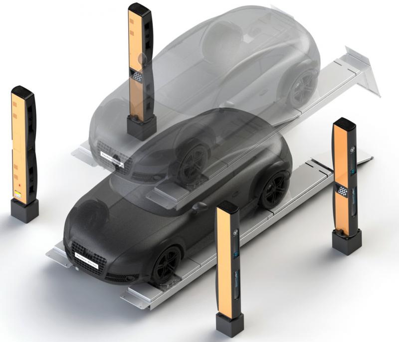 Поворотный механизм позволяет производить измерение автомобилей разной длинны без перемещения стоек