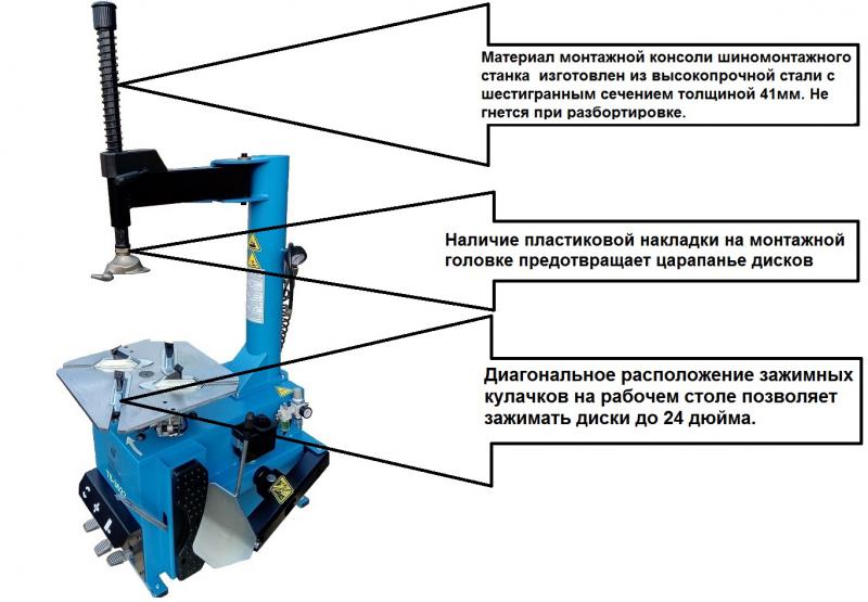 шиномонтажного станка полуавтомат TS-3022 предназначен для монтажа и демонтажа колес легковых автомобилей, легких грузовиков,