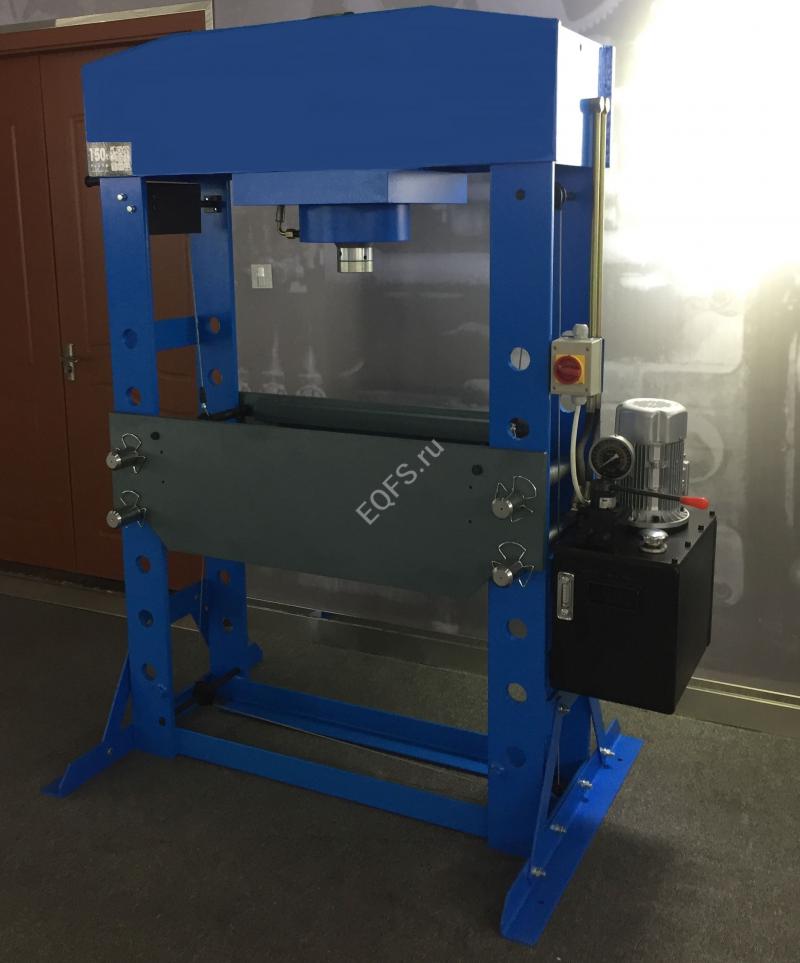 Технические особенности: Полностью сварная конструкция рамы (нет болтовых соединений) Гидравлический насос с электрогидравлическим приводом - электропривод значительно облегчает работу. Гидроцилиндр с пуансоном имеет возможность перемещения по всей ширине каретки. Надежная сварная конструкция рамы Ход поршня 350 мм Регулируемый стол Гидравлический цилиндр с усилием 150 тонн. Автоматический возврат поршня. Предохранительный клапан для защиты от перегрузок. Глицеринозаполненный манометр для контроля силы нагрузки. Надежные сальники гидравлической системы.