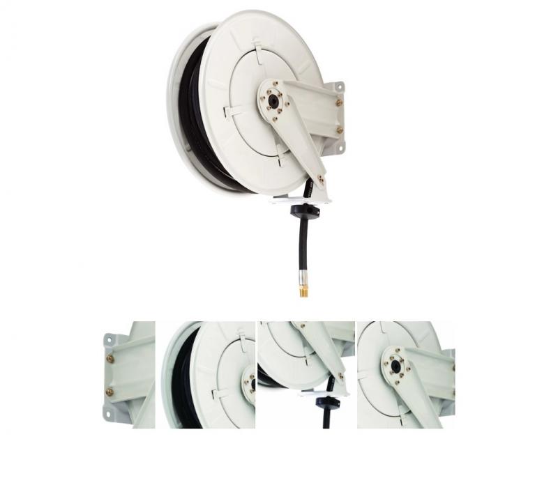 1) Прочный и надежный корпус: благодаря самовыравнивающейся системе шланг легко наматывается. Специальная открытая конструкция катушки, позволяет легко разбирать и собирать шланг, и контролировать перемотку.