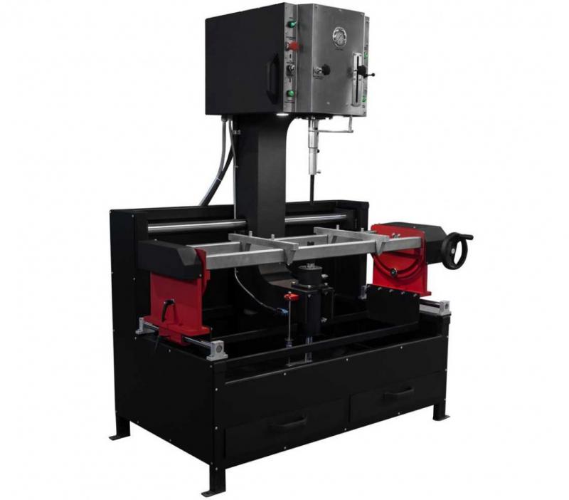 Стенд это рамная конструкция, на которой смонтированы поворотный стол для установки и фиксации головки, вертикальный кронштейн с гидроцилиндром и пинолью, в которую устанавливают оправки для выпрессовки и запрессовки направляющих втулок. В комплект стенда входи масляный насос. Кронштейн установлен на направляющих рамы с возможностью легкого перемещения в горизонтальном направлении, что обеспечивает возможность быстрого и точного центрирования оправок с осью установочного отверстия в головке для втулок. Поворотный стол предназначен для установки головок с наклонной осью клапанов относительно их привалочных плоскостей. Стенд оснащен вспомогательными устройствами для центрирования и управления процессом выпрессовки и запрессовки направляющих втулок. Данный стенд обладает опцией рассухаривания и засухаривания ГБЦ.