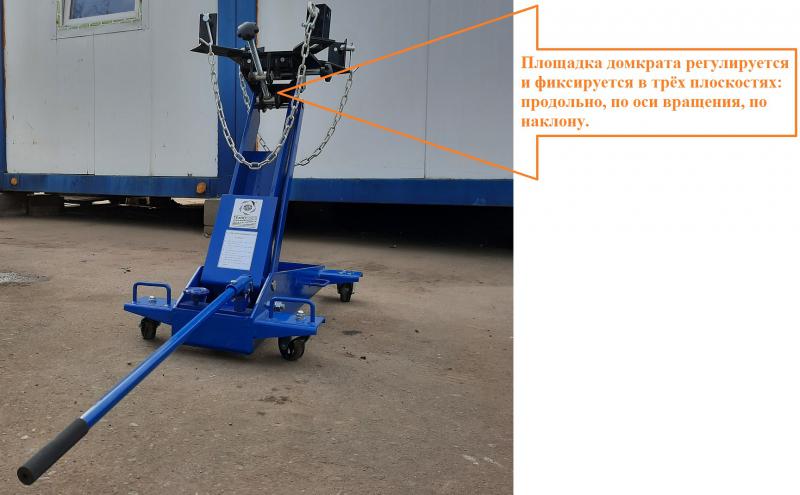 Трансмиссионная гидравлическая стойка является мобильным подъёмным устройством. С ее помощью можно поднять и переместить снятый узел. При подъеме на требуемую высоту удобно монтировать снятый агрегат. Цвет темно-синий.