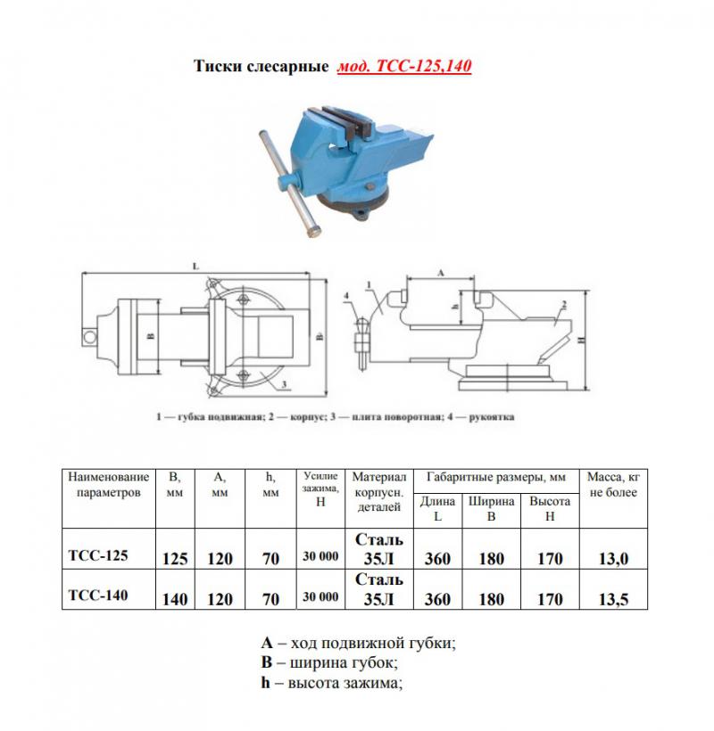 | ТХ (таблица) (Описание) : | Ширина губок, мм 125 Усилие зажима, Н 30 000 Материал корпуса сталь 35Л Ход подвижной губки, мм 120 Высота зажима 70 Габариты, ДхШхВ 360х180х170 Масса, кг ~13 |