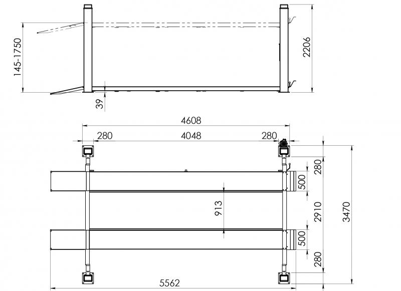 Четырехстоечный подъёмник. Конструктивные особенности: