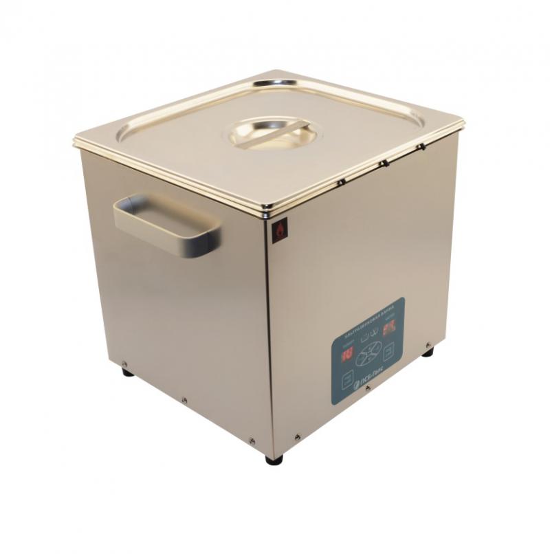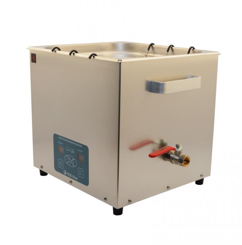Ультразвуковые ванны объём 18 л., предназначены для очистки изделий от жиров, масел, полировальных паст и других технологических загрязнений; получения стойких эмульсий из несмешиваемых жидкостей; измельчения (диспергации) твёрдых и жидких частиц; ускорения химических реакций; смешивания и перемешивания. Очистка изделий производится в водных растворах с добавлением технических моющих средств. Корпус ванны и рабочая область выполнены из нержавеющей стали.