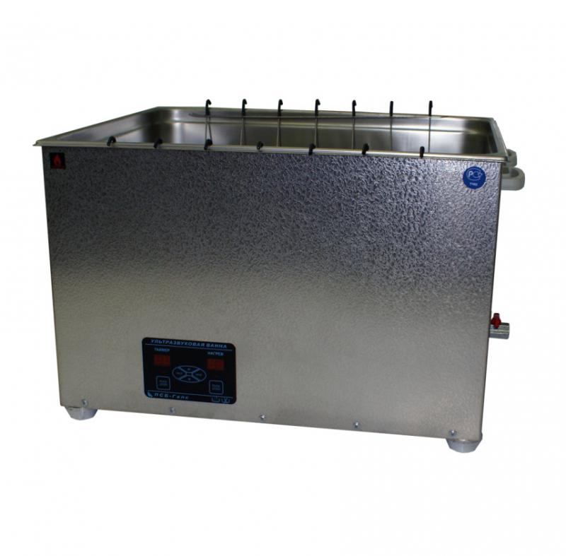 Ультразвуковые ванны объём 44 л., предназначены для очистки изделий от жиров, масел, полировальных паст и других технологических загрязнений; получения стойких эмульсий из несмешиваемых жидкостей; измельчения (диспергации) твёрдых и жидких частиц; ускорения химических реакций; смешивания и перемешивания. Очистка изделий производится в водных растворах с добавлением технических моющих средств. Корпус ванны и рабочая область выполнены из нержавеющей стали.