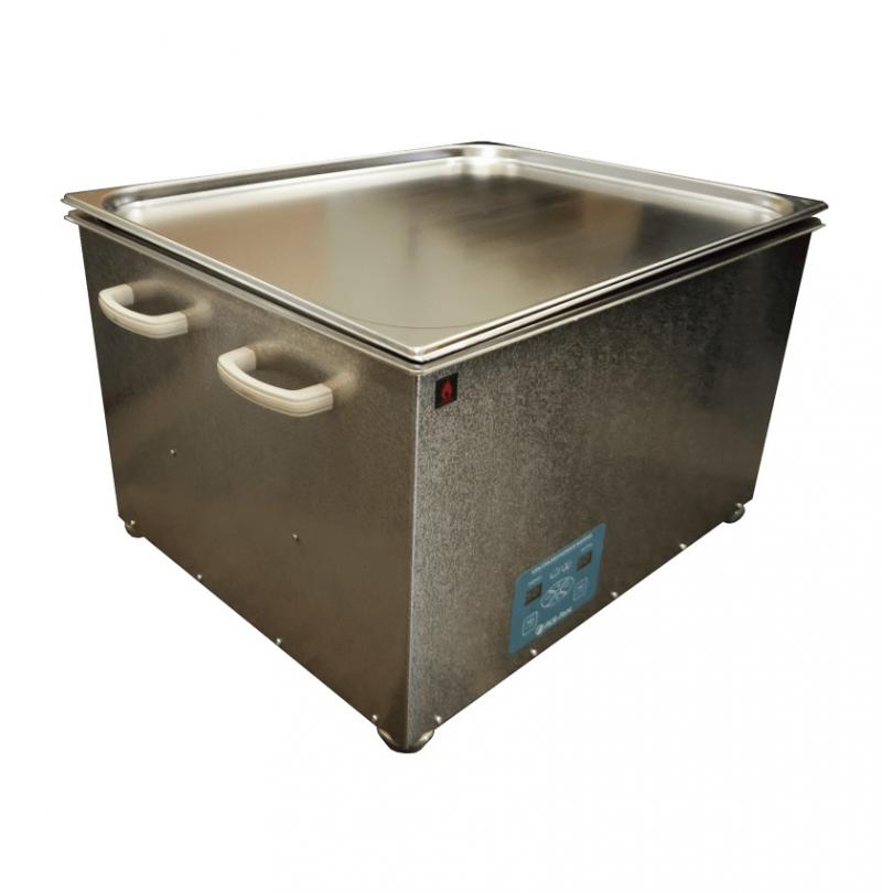Ультразвуковые ванны объём 56 л., предназначены для очистки изделий от жиров, масел, полировальных паст и других технологических загрязнений; получения стойких эмульсий из несмешиваемых жидкостей; измельчения (диспергации) твёрдых и жидких частиц; ускорения химических реакций; смешивания и перемешивания. Очистка изделий производится в водных растворах с добавлением технических моющих средств. Корпус ванны и рабочая область выполнены из нержавеющей стали.