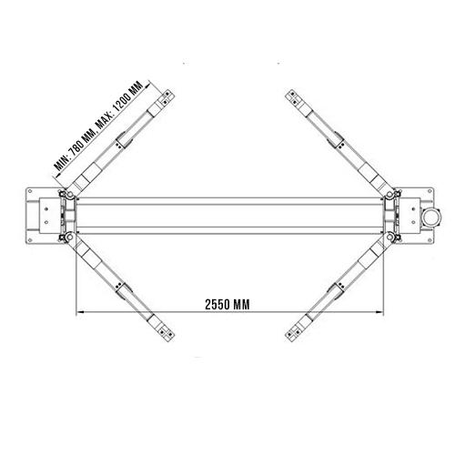| ТХ (таблица) (Описание) : | Максимальное расстояние между подхватами: 2550 мм Высота подъема лап (с подхватами): 1800 (1990) мм Длина задних лап: 780-1200 мм Длина передних лап: 780-1200 мм Толщина покрашенного металла в стойках: 5,2 мм Диаметр тросов синхронизации: 9 мм Расстояние между колоннами: 2800 мм Грузоподъемность: 4 т Минимальная высота подхвата: 100 мм Мощность: 2,2 кВт Напряжение: 220/380В Гарантия: 24 месяца |