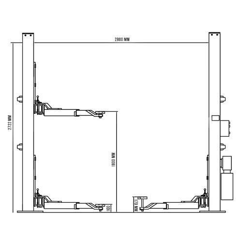 Расстояние между колоннами – 2800 мм, а минимальная высота подхвата – 100 мм;