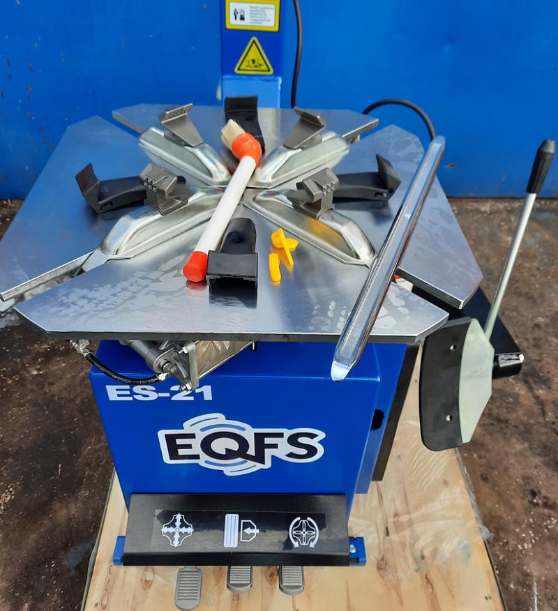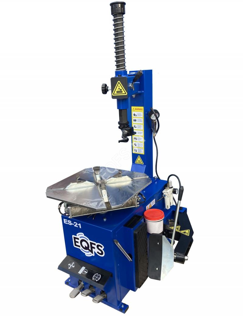 Шиномонтажный станок ES-21 предназначен для монтажа и демонтажа шин легковых автомобилей, внедорожников и легких грузовиков с размером колес от 10 до 24”.  Максимальный захват колеса при внешнем зажиме - 21", при внутреннем зажиме - 24". Все соединения пневмо-системы металлические. В комплекте пластиковые накладки на кулачки. Прямой зажим диска (что исключает его проскальзывание в кулачках). Увеличенное усилие отжимного цилиндра (2700 кг) по сравнению с аналогами.
