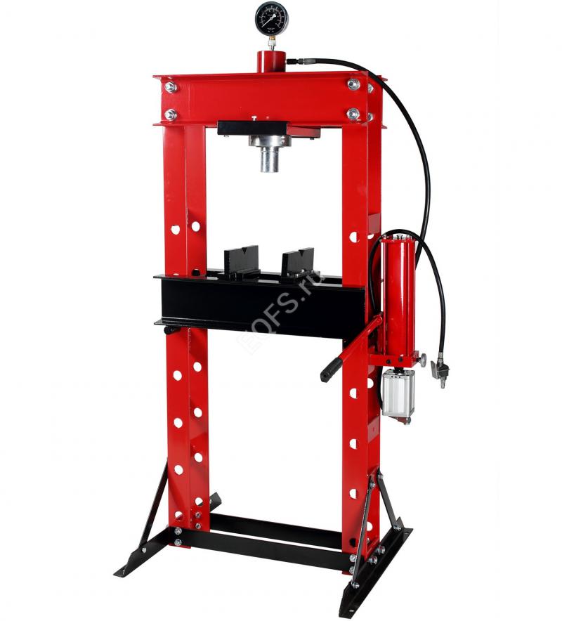 Пресс гидравлический оснащен насосом с ручными и пневматическим приводом с максимальным усилием 30т.